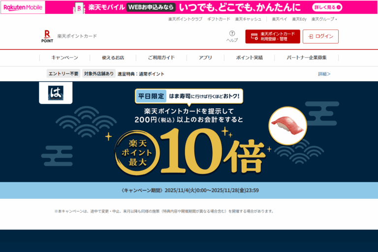 はま寿司|平日限定 楽天ポイント最大10倍キャンペーン