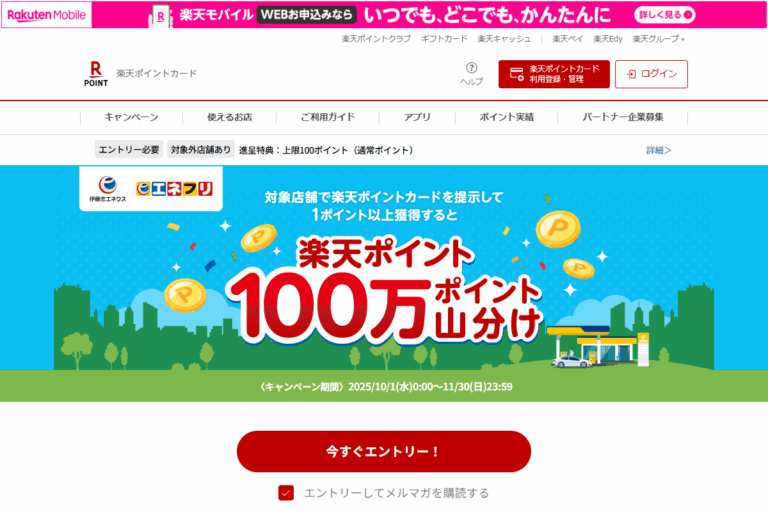 伊藤忠エネクス系列・エネクスフリート|楽天ポイント100万ポイント山分け!