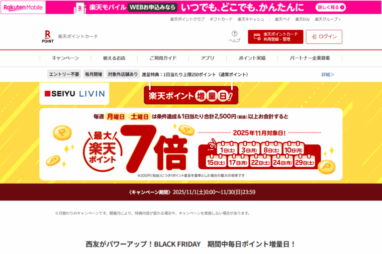 西友・リヴィン|条件達成で楽天ポイント最大7倍!楽天ポイント増量日!